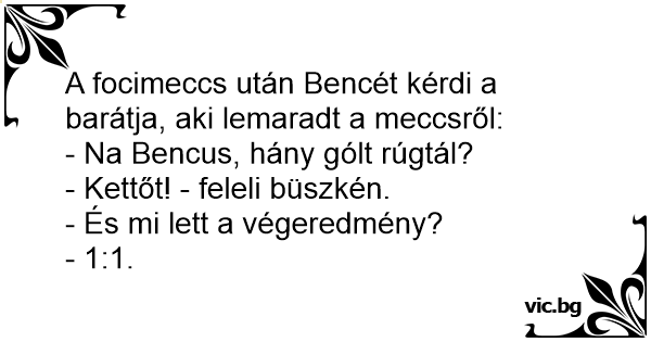 A focimeccs után Bencét kérdi a barátja, aki lemaradt a meccsről: