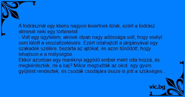 Ekkor azonban egy maréknyi aggódó ember ment oda hozzá, és megkérdezték, mi a baj? Mikor megtudták az okot, egy gyors gyűjtést rendeztek, és csodák csodájára össze is jött a szükséges összeg!