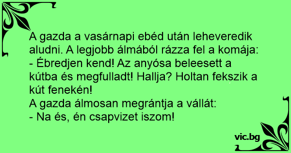 A gazda a vasárnapi ebéd után leheveredik aludni. A legjobb álmából rázza fel a komája: