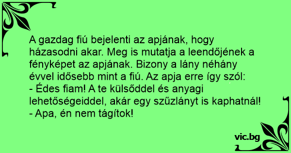 - Édes fiam! A te külsőddel és anyagi lehetőségeiddel, akár egy szűzlányt is kaphatnál!