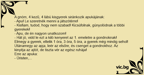 - Hát jó, vidd le ezt a kiló kenyeret az 1. emeletre a gondnoknak!