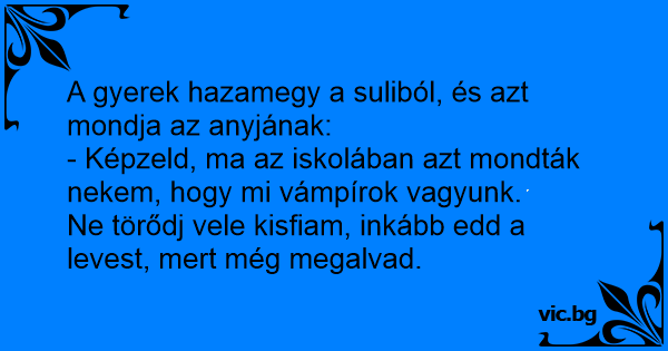 - Képzeld, ma az iskolában azt mondták nekem, hogy mi vámpírok vagyunk.