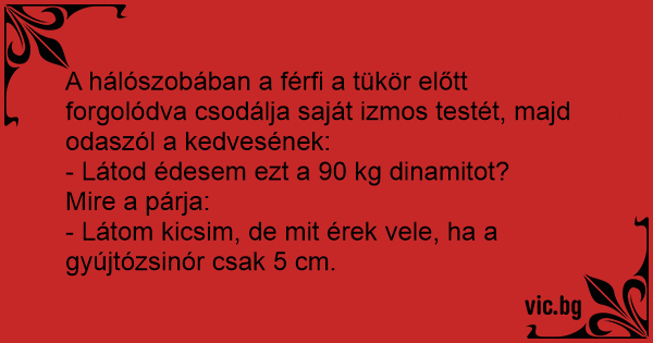 A hálószobában a férfi a tükör előtt forgolódva csodálja saját izmos testét, majd odaszól a kedvesének: