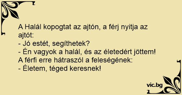 A Halál kopogtat az ajtón, a férj nyitja az ajtót: