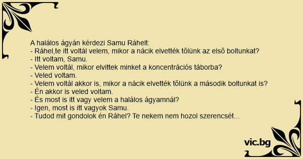 - Velem voltál, mikor elvittek minket a koncentrációs táborba?