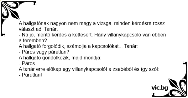 A hallgatónak nagyon nem megy a vizsga, minden kérdésre rossz választ ad. Tanár: