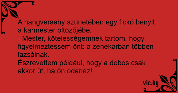 - Mester, kötelességemnek tartom, hogy figyelmeztessem önt: a zenekarban többen lazsálnak.