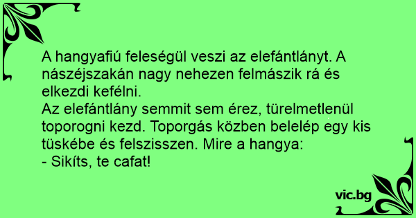 A hangyafiú feleségül veszi az elefántlányt. A nászéjszakán nagy nehezen felmászik rá és elkezdi kefélni.