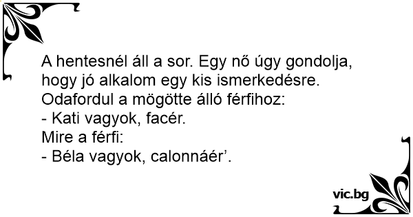A hentesnél áll a sor. Egy nő úgy gondolja, hogy jó alkalom egy kis ismerkedésre.