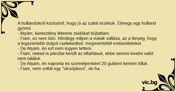 Een Hollander ging biechten: 'Vergiffenis, meneer de kapelaan,' snikte hij, 'in de Tweede wereldoorlog had ik een onderduiker op mijn zolder.' 'Nou, dat is toch geen zonde?' vond de kapelaan....