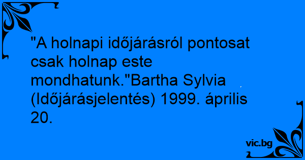 "A holnapi időjárásról pontosat csak holnap este mondhatunk."Bartha Sylvia (Időjárásjelentés) 1999. április 20.