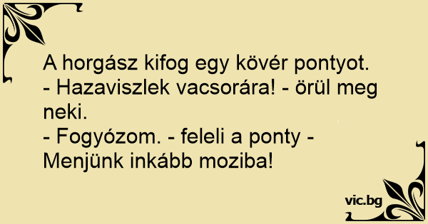 - Fogyózom. - feleli a ponty - Menjünk inkább moziba!