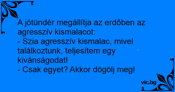 - Szia agresszív kismalac, mivel találkoztunk, teljesítem egy kivánságodat!