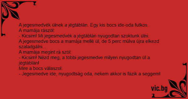 - Kicsim! Mi jegesmedvék a jégtáblán nyugodtan szoktunk ülni.