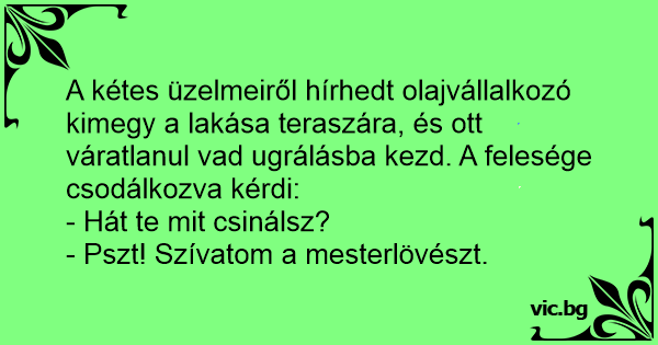 A kétes üzelmeiről hírhedt olajvállalkozó kimegy a lakása teraszára, és ott váratlanul vad ugrálásba kezd. A felesége csodálkozva kérdi: