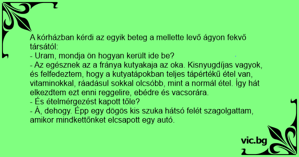 A kórházban kérdi az egyik beteg a mellette levő ágyon fekvő társától: