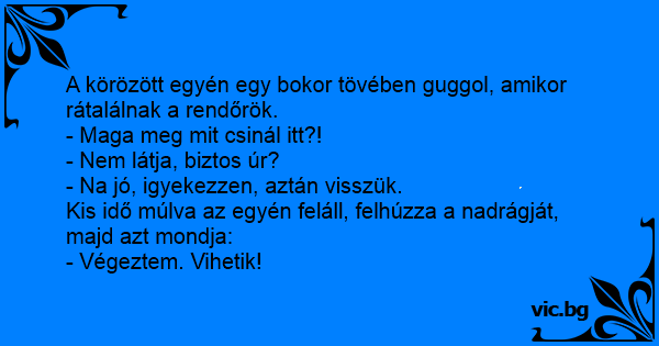 Kis idő múlva az egyén feláll, felhúzza a nadrágját, majd azt mondja: