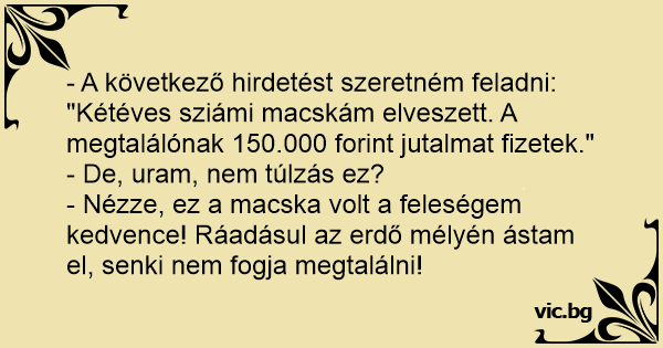 - Nézze, ez a macska volt a feleségem kedvence! Ráadásul az erdő mélyén ástam el, senki nem fogja megtalálni!