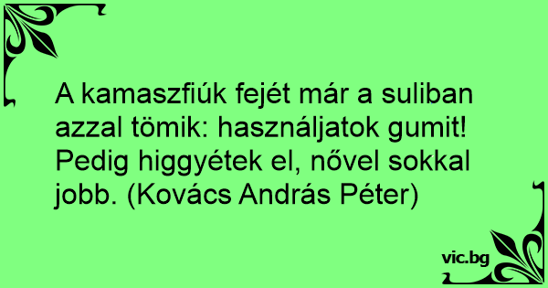 A kamaszfiúk fejét már a suliban azzal tömik: használjatok gumit! Pedig higgyétek el, nővel sokkal jobb. (Kovács András Péter)