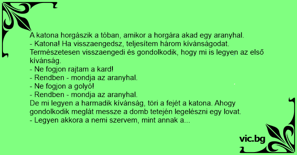 - Katona! Ha visszaengedsz, teljesítem három kívánságodat.
