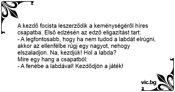 A kezdő focista leszerződik a keménységéről híres csapatba. Első edzésén az edző eligazítást таrт: