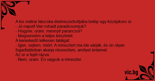 A kis mátrai falucska élelmiszerboltjába belép egy középkorú úr.