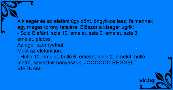 - Szia Elefánt, szia 10. emelet, szia 6. emelet, szia 3. emelet, placss.