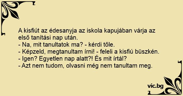 - Pappa, pappa, vi har lärt oss att skriva! - Vad skriver ni då? - Vet inte, vi har inte lärt oss att läsa än.