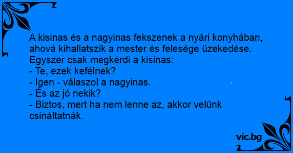 A kisinas és a nagyinas fekszenek a nyári konyhában, ahová kihallatszik a mester és felesége üzekedése.