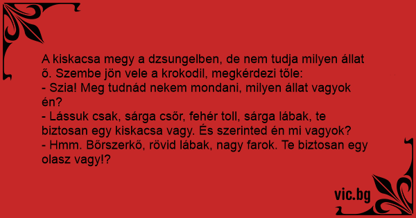 - Hmm. Bőrszerkő, rövid lábak, nagy farok. Te biztosan egy olasz vagy!?