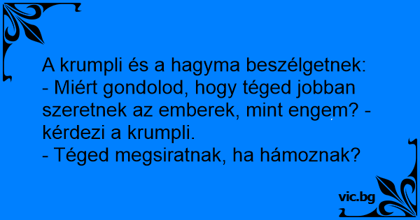 - Miért gondolod, hogy téged jobban szeretnek az emberek, mint engem? - kérdezi a krumpli.