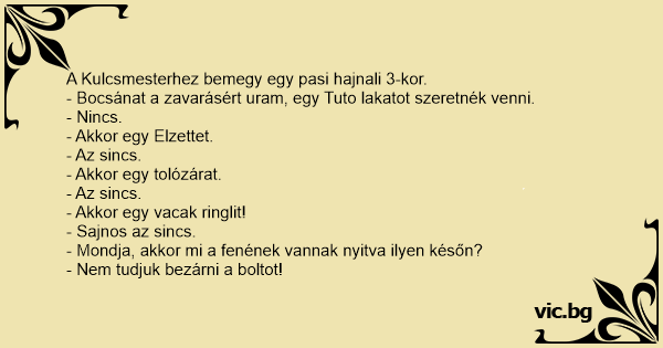 A Kulcsmesterhez bemegy egy pasi hajnali 3-kor.