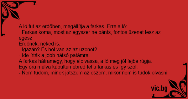 A ló fut az erdőben, megállítja a farkas. Erre a ló: