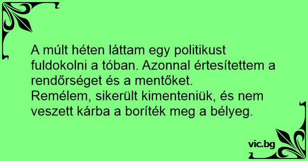A múlt héten láttam egy politikust fuldokolni a tóban. Azonnal értesítettem a rendőrséget és a mentőket.