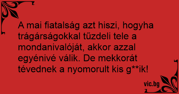 A mai fiatalság azt hiszi, hogyha trágárságokkal tűzdeli tele a mondanivalóját, akkor azzal egyénivé válik. De mekkorát tévednek a nyomorult kis g**ik!