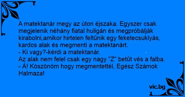 A matektanár megy az úton éjszaka. Egyszer csak megjelenik néhány fiatal huligán és megpróbálják kirabolni,amikor hirtelen feltűnik egy feketecsuklyás, kardos alak és megmenti a matektanárt.
