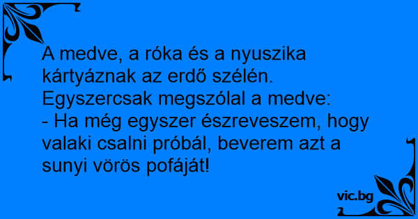 A medve, a róka és a nyuszika kártyáznak az erdő szélén. Egyszercsak megszólal a medve: