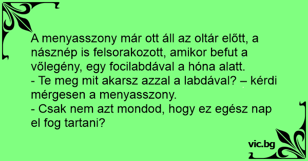 - Te meg mit akarsz azzal a labdával? – kérdi mérgesen a menyasszony.