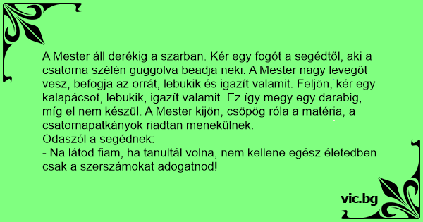 - Na látod fiam, ha tanultál volna, nem kellene egész életedben csak a szerszámokat adogatnod!