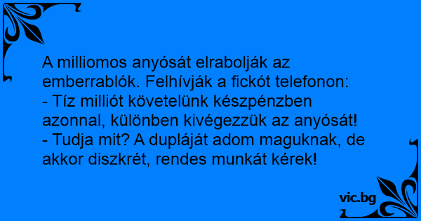 - Tíz milliót követelünk készpénzben azonnal, különben kivégezzük az anyósát!