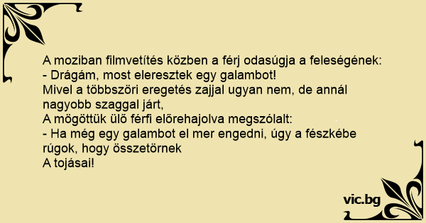 A moziban filmvetítés közben a férj odasúgja a feleségének: