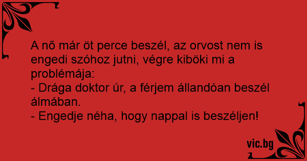 - Drága doktor úr, a férjem állandóan beszél álmában.