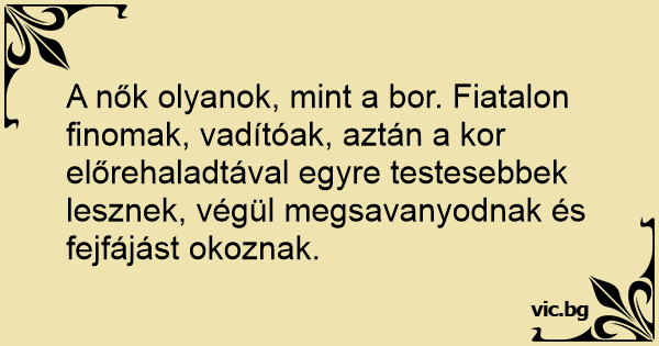 A nők olyanok, mint a bor. Fiatalon finomak, vadítóak, aztán a kor előrehaladtával egyre testesebbek lesznek, végül megsavanyodnak és fejfájást okoznak.