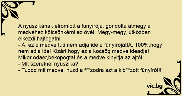 - Tudod mit medve, húzd a f**zodra azt a kib**zott fűnyírót!!