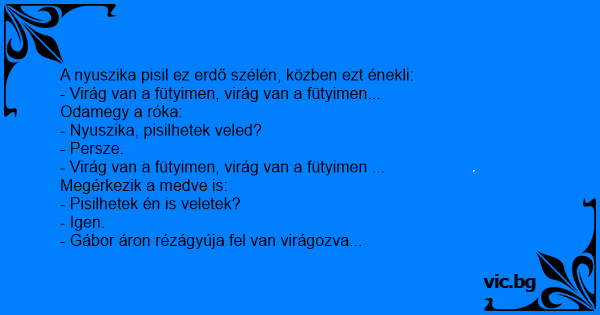 A nyuszika pisil ez erdő szélén, közben ezt énekli: