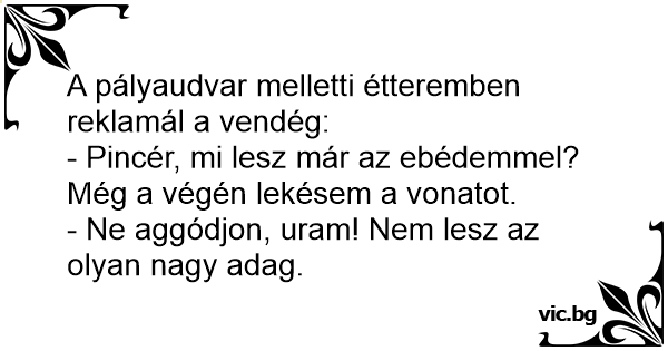 - Pincér, mi lesz már az ebédemmel? Még a végén lekésem a vonatot.