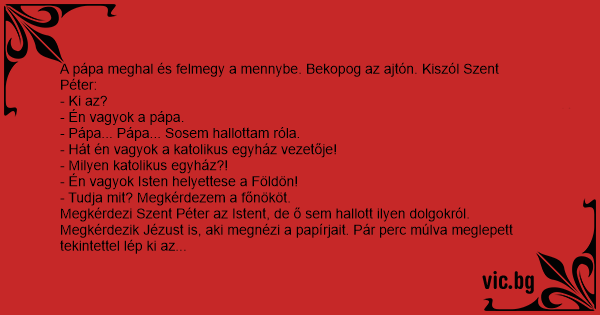 A pápa meghal és felmegy a mennybe. Bekopog az ajtón. Kiszól Szent Péter: