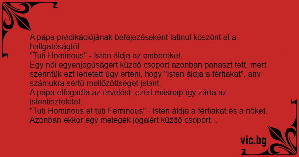 A pápa elfogadta az érvelést, ezért másnap így zárta az istentiszteletet: