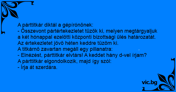- Elnézést, párttitkár elvtárs! A keddet hány d-vel írjam?