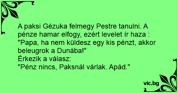 "Papa, ha nem küldesz egy kis pénzt, akkor beleugrok a Dunába!"
